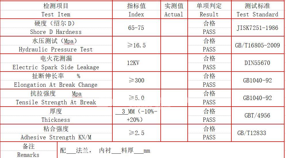 我公司生產(chǎn)的鋼襯塑管及管襯在生產(chǎn)制作完成之后,會根據(jù)相關(guān)執(zhí)行標(biāo)準(zhǔn)由檢測人員進(jìn)行廠內(nèi)質(zhì)量檢測,檢測合格后出具產(chǎn)品質(zhì)量檢測報告。那么鋼襯塑管及管件進(jìn)行產(chǎn)品質(zhì)量檢測都有哪些檢測項目呢?